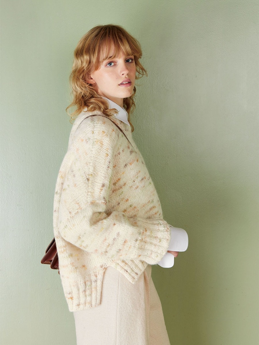 Poppy består av 50% superfine alpakka, 15% merinoull og 35% bomull. Fibrene er blåst inn i en bomullsstrømpe, noe som gir et mykt og lett plagg.