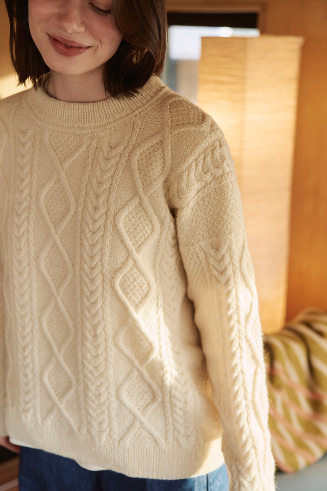 Sølve arangenser er en klassisk flettegenser med vakre strukturer og gjennomtenkte detaljer. Passformen er rett og romslig passform med rette skuldre og rund hals. Mønsteret består av to hovedfletter som rammes inn av små fletter, perlestrikk og vrangmasker. Dette er et strikkeprosjekt som både gir stolthet, mestringsfølelser og en klassiker i garderoben for livet. Ønsker du en lenger bol, strikk den lenger før felling til ermehull.