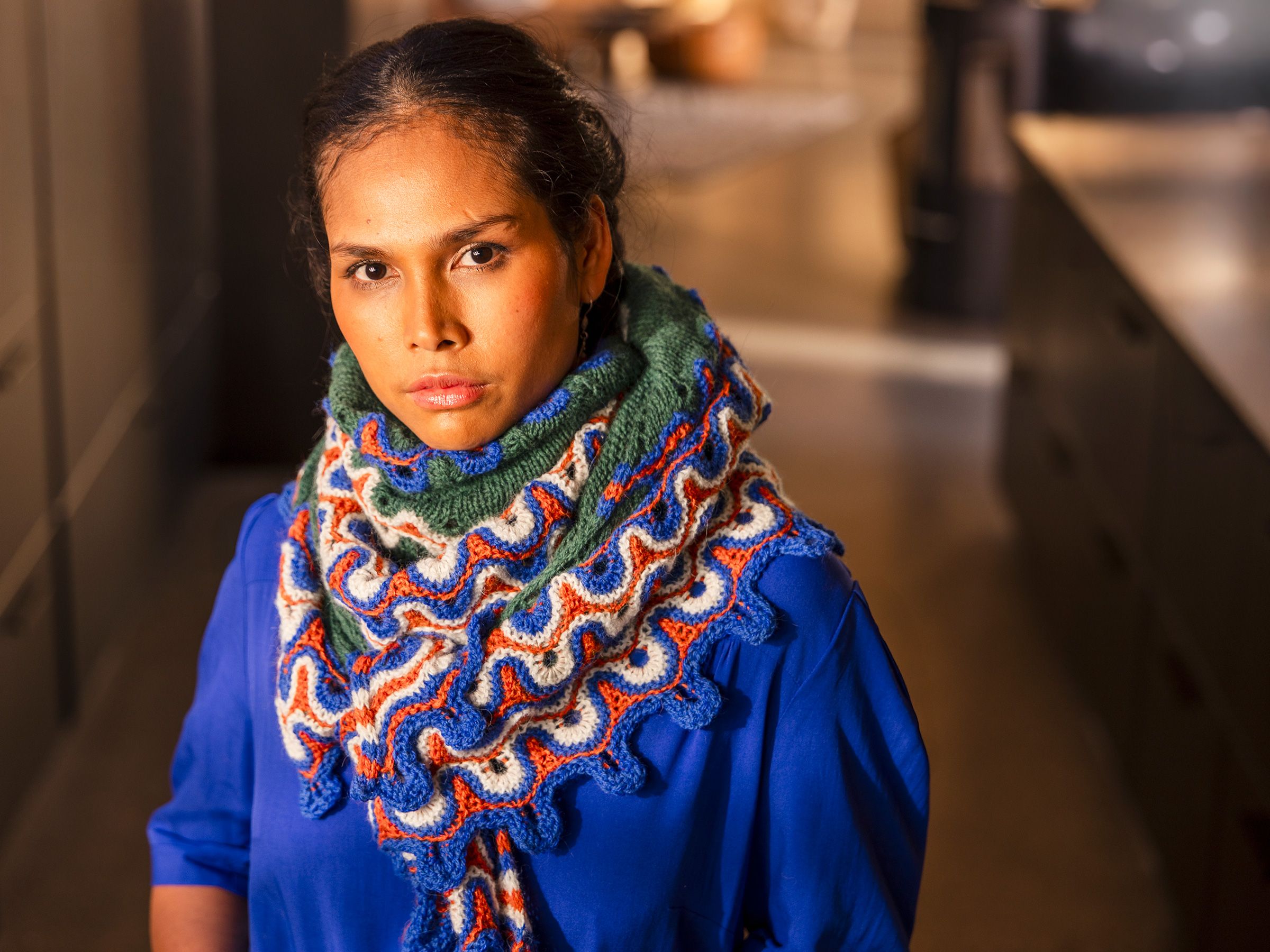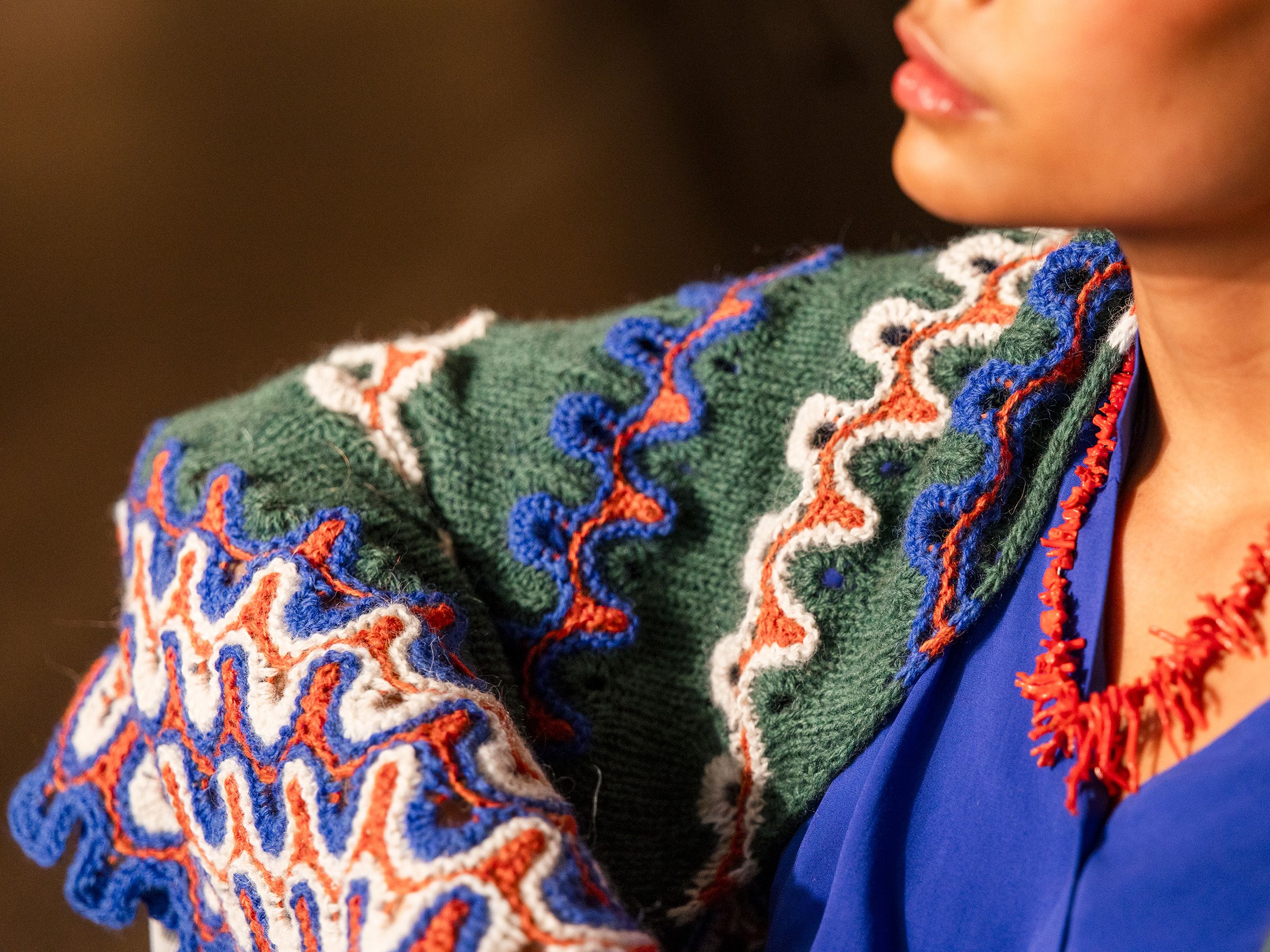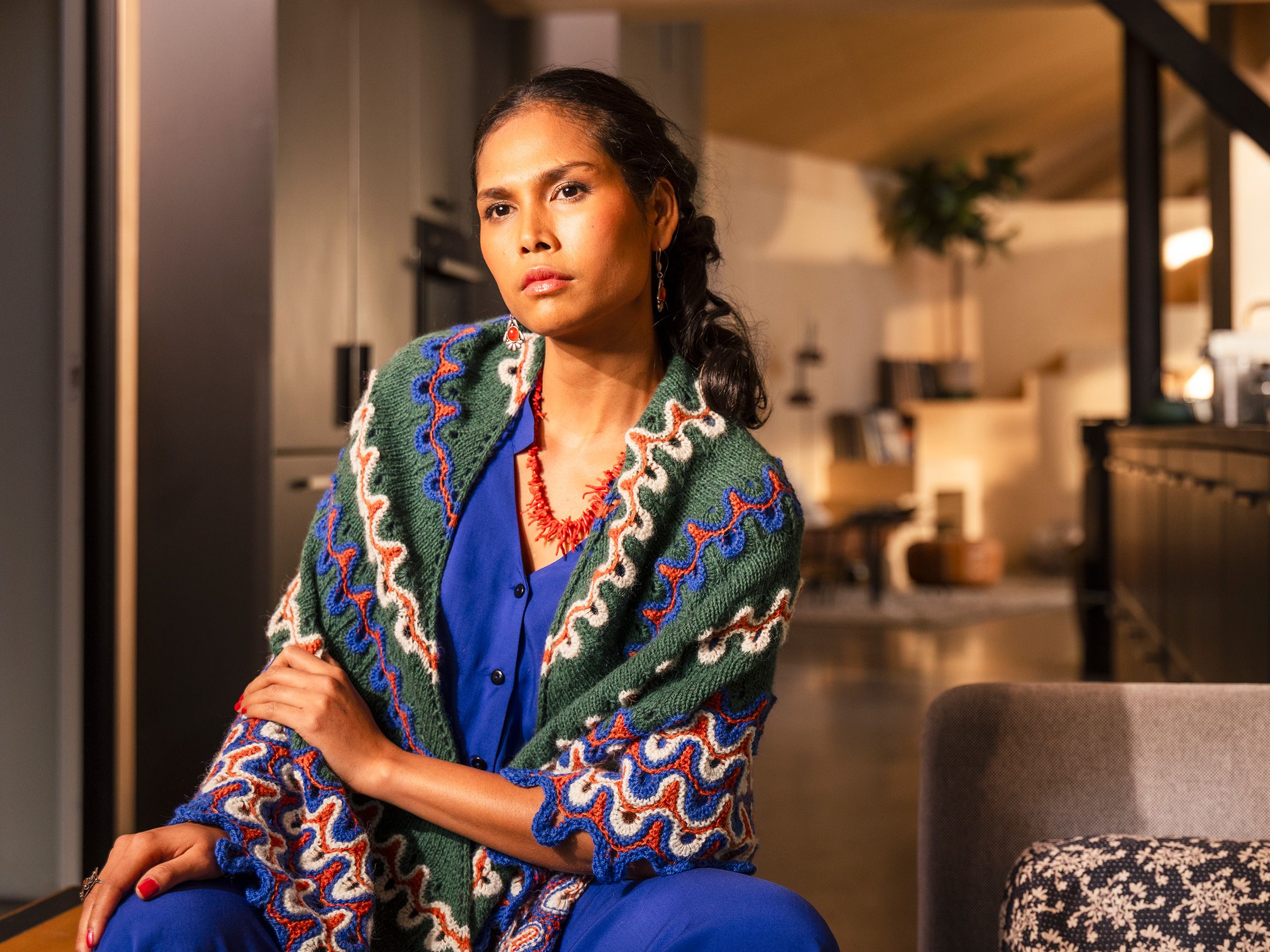 Dalarna-sjalet er inspirert av fargene og mønstrene fra Dalahestene.
