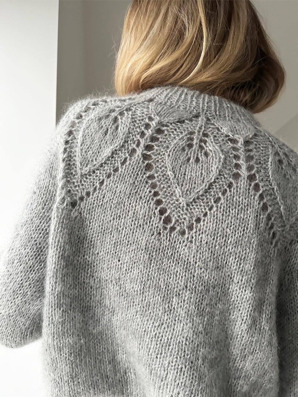 Dahlia Sweater har det gjenkjennelige Dahlia-mønsteret på bærestykket, men utover det er genseren enkel og med rett fasong på bol og er-mer samt smale ribbkanter.