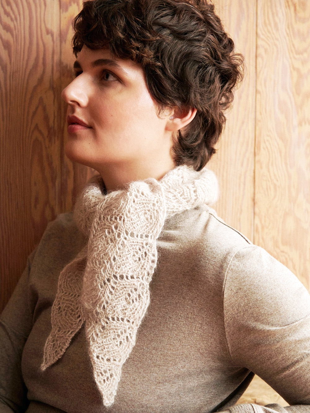 Strikk et lite skjerf som holder halsen varm, eller strikk det lengre så skjerfet også holder skuldrene varme. Mønsteret er fint på begge sider, og det er ikke vanskelig fordi det er bygd opp av rett og vrang masker med enkle fellinger og økninger.