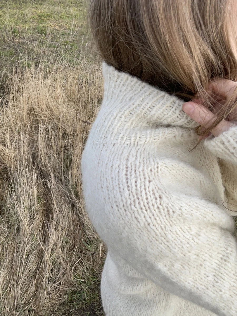 Sola er en myk og lett genser med en romslig passform. Den strikkes ovenfra og ned. Sola er konstruert med en «rund» sadelskulder, som gir en kledelig passform i alle størrelser.