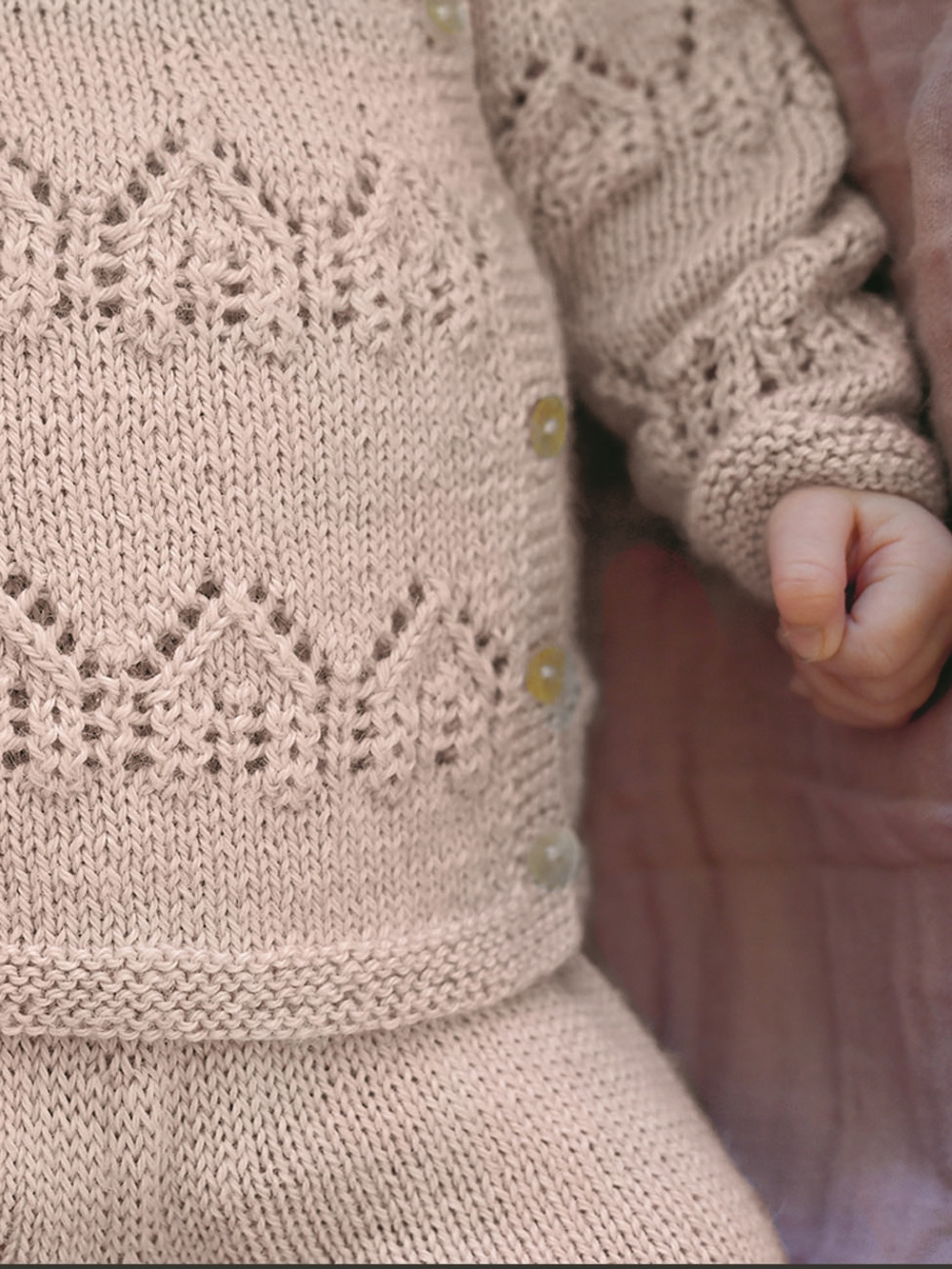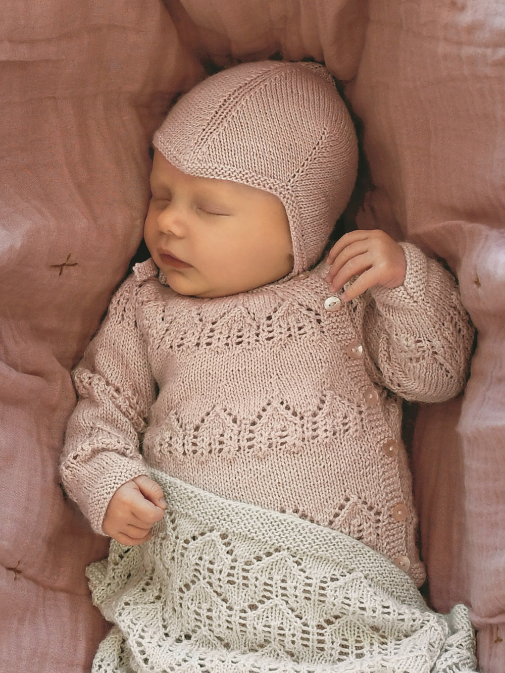 Små fine hus i hulmønster forteller at her er en lille ny verdensborger på vei hjem for første gang. De nostalgiske sparkebuksene med fot er behagelige for den lille å ha på, og dette hentesettet kan fort bli et av fremtidens arvestykker.