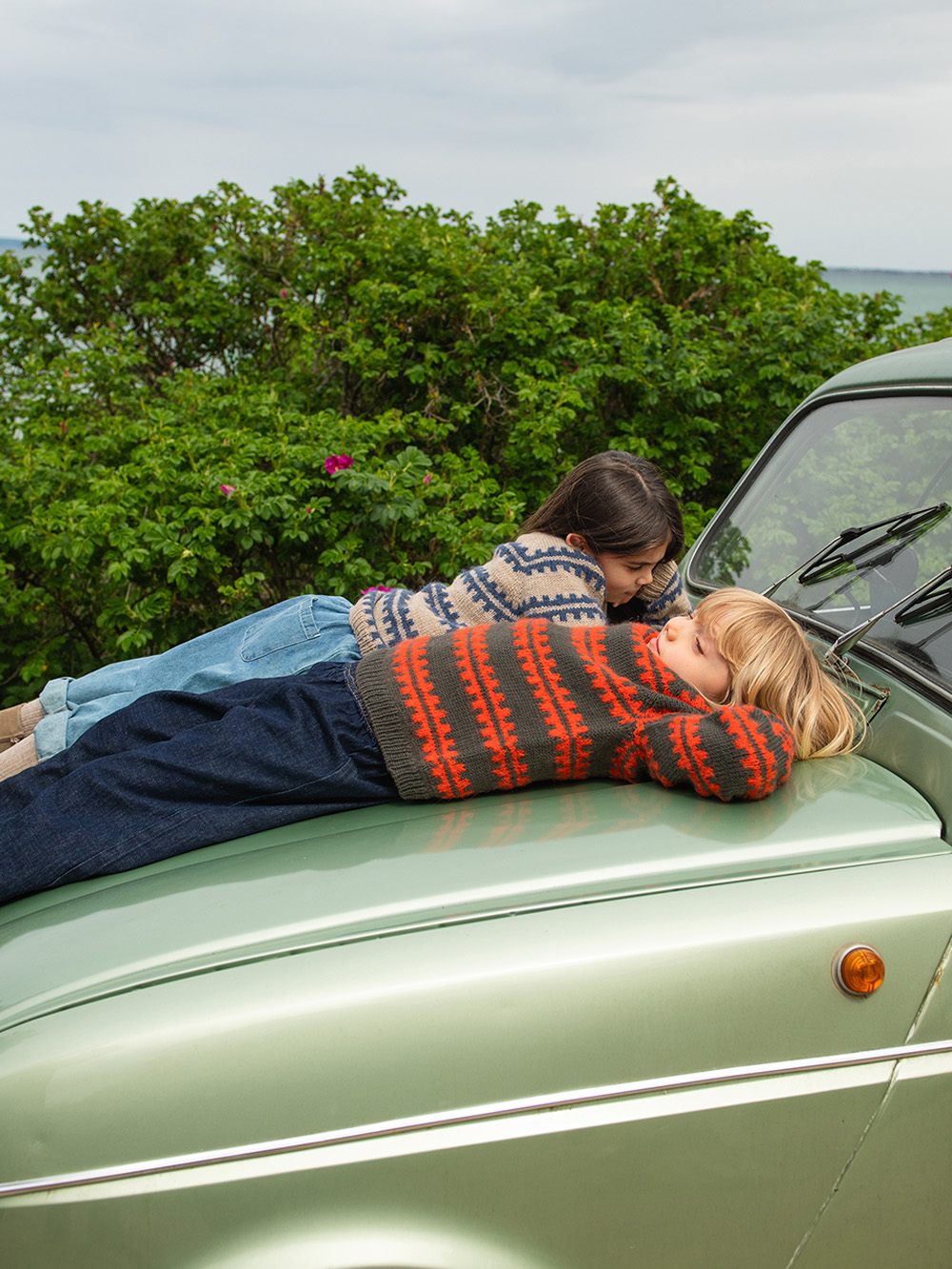 Det legges opp masker til bærestykket som strikkes frem og tilbake med økninger til raglan og halsutringning. Når økningene til halsutringning er ferdig tas arbeidet sammen, og det strikkes rundt med raglanøkninger og mønster etter diagram. Når alle maskene er økt ut deles arbeidet til ermer, for- og bakstykket, og delene strikkes ferdig hver for seg. Halskanten strikkes til slutt.