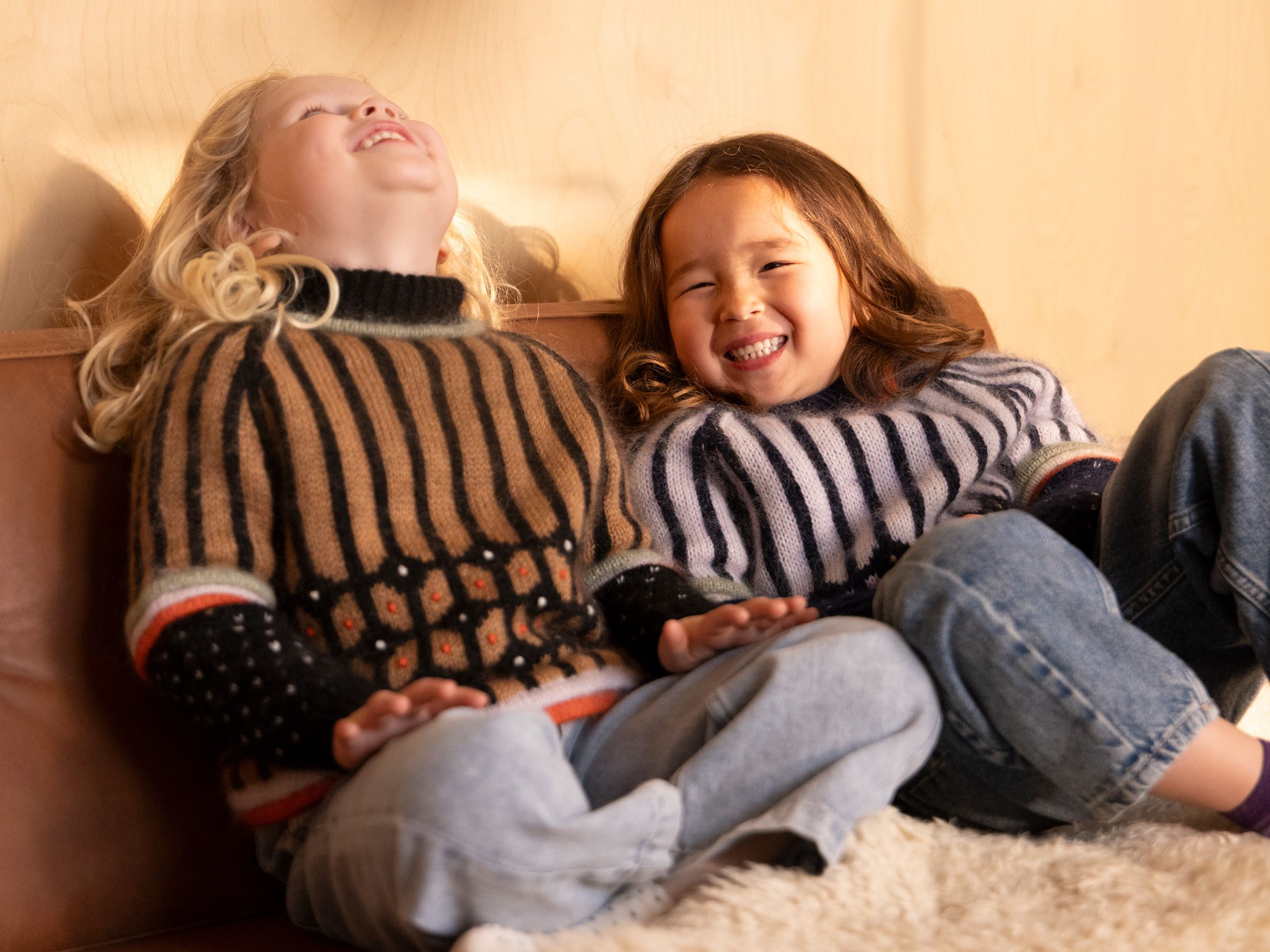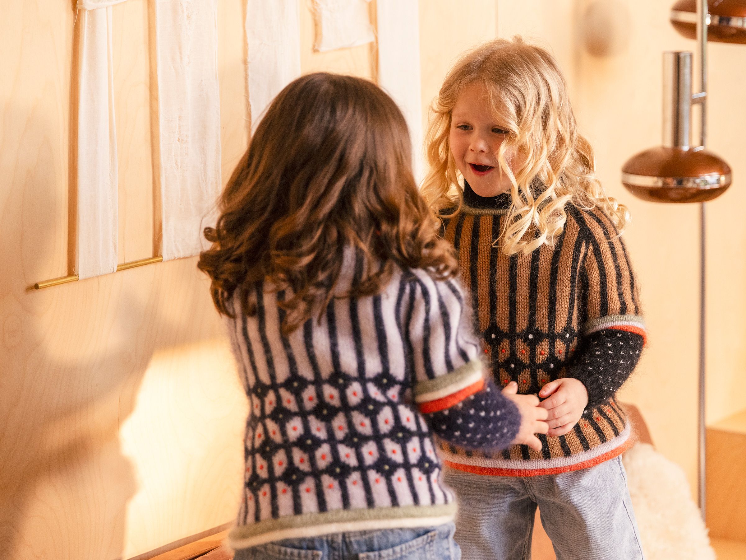 Delene setter du så sammen til bærestykket som du strikker rundt med raglanfellinger opp til halsen. Så strikker du opp masker langs halsåpningen og strikker kragen først med biese, deretter i ribb og med strikket avfelling på vrangen av genseren.